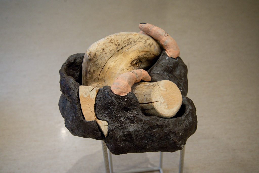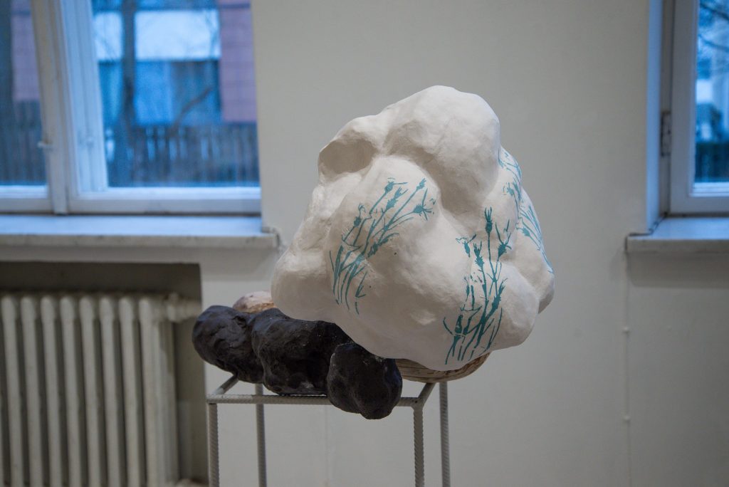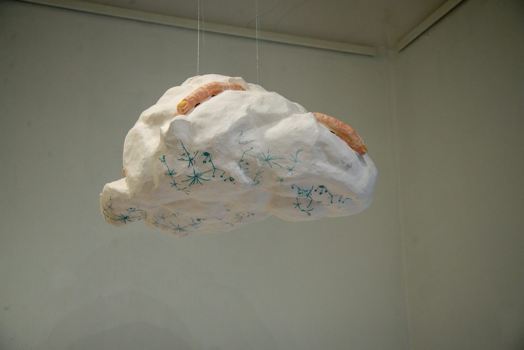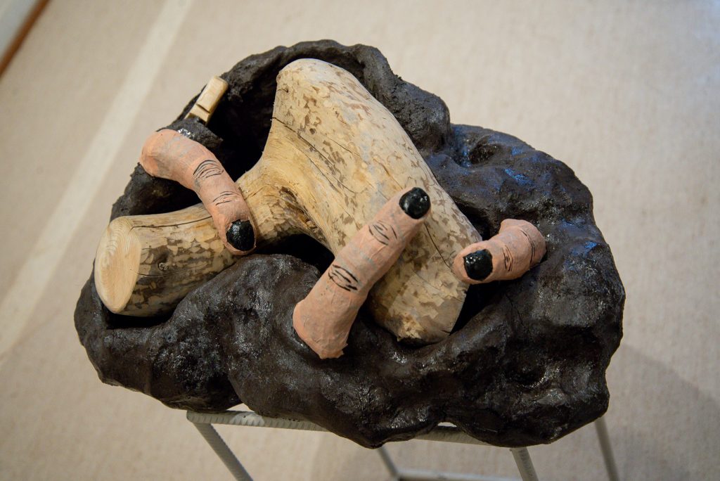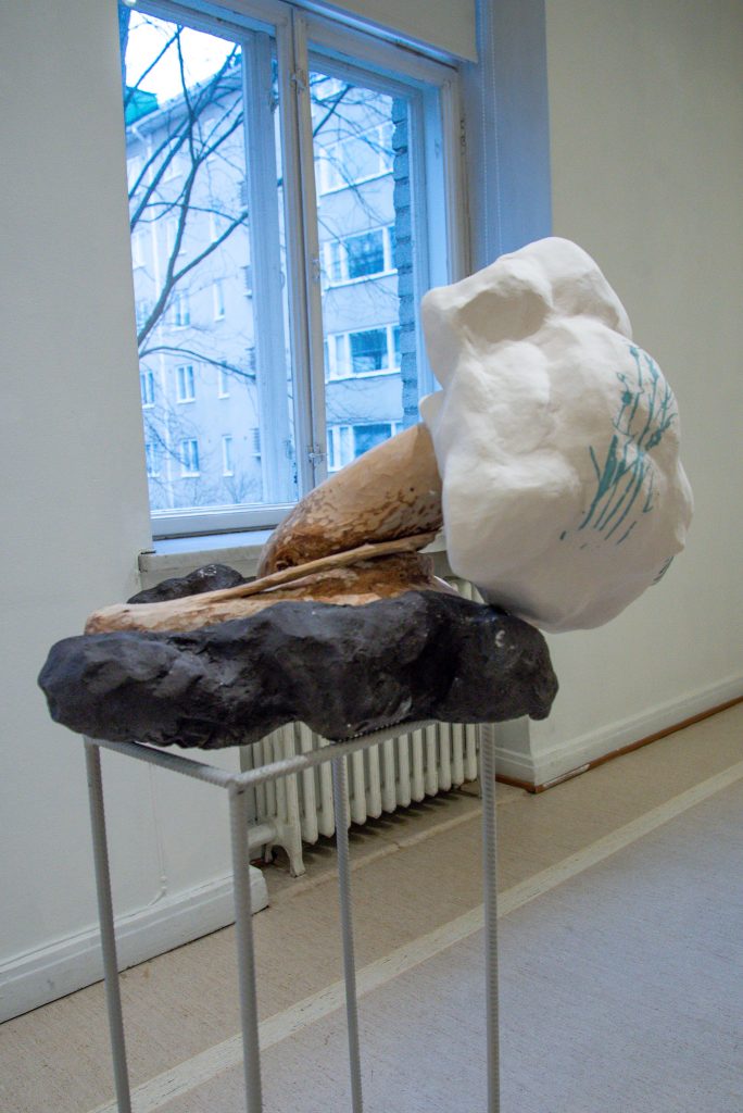 Keraamisten pilvimuotojen, niihin kietoutuneiden ja niistä ulospistävien sormien kautta pohdin puuttumista. Ihminen on mestari sopeutumaan ja muokkaamaan elinympäristöjään. Nyt kuitenkin olemme vaiheessa, jossa meidän pitää reagoida itse aiheuttamaamme kiihtyvään muutokseen. Mikä määrä sormeilua on hyvä ja missä vaiheessa liikaa?
